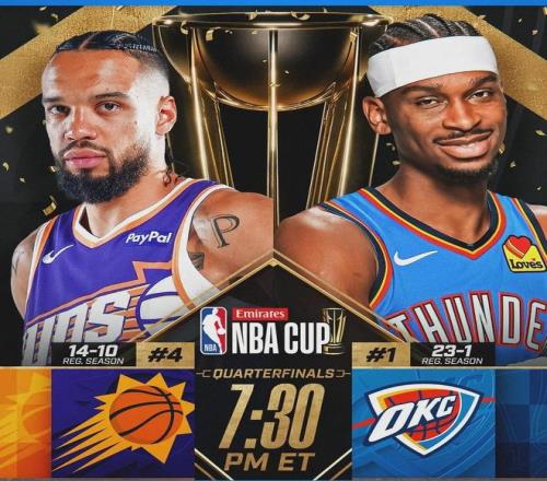 北京时间12月11日,NBA杯1/4决赛:雷霆主场vs太阳。咱们已经介绍过,除了决赛之外,其余NBA杯的比赛结果均算常规赛战绩。布克(右侧腹股沟拉伤)本场缺阵,他在赛前表态愿意出战。但太阳非常谨慎,禁止布克冒险。